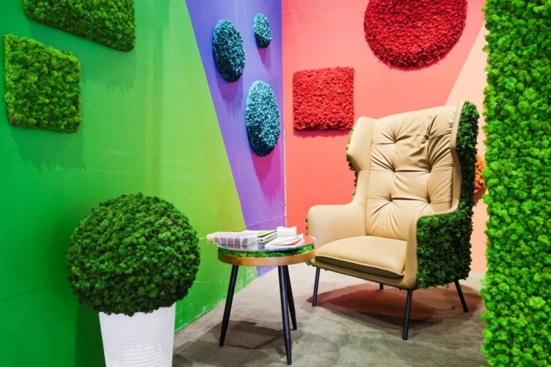 本屆辦公生活主題館以“自然綠境·地球空間·聲學界麵/Green Land·Earth Space·Acoustic Interface”為主題。由辦公降噪、運動、社交…進口原木地板+永生苔蘚,來演譯“自然綠境”,由國內外多家精品辦公家具,融合成ABW生態,來演繹“地球空間”,由PET隧道、材料、家具、空間、飾品…組合,來演繹“聲學界麵”。