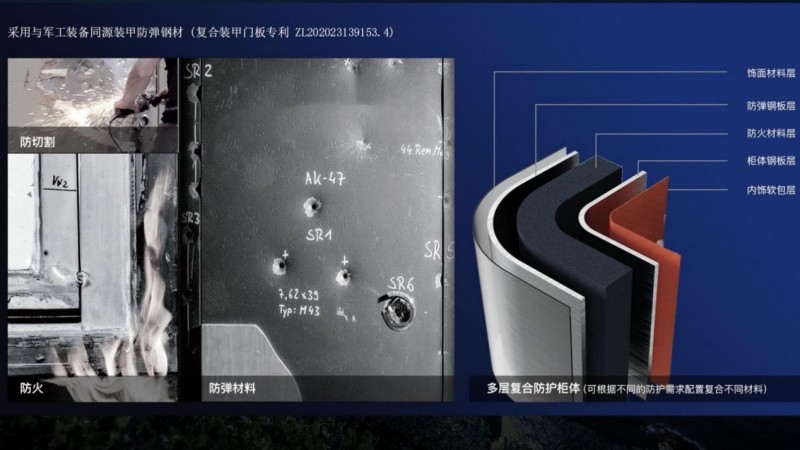 “皇家尊藏”絕非虛名,其內核是艾譜對極致安全的不懈追求。金匱的核心壁壘在於其“裝甲級”防護體係:箱體采用稀缺昂貴的NP550防彈鋼板鍛造而成,材料成本遠超普通產品數倍。其驚人的厚度與強度,通過了嚴苛的行業高標準測試,獲得權威“裝甲級”安全認證,為抵禦暴力入侵築起銅牆鐵壁。同時,應用艾譜自主研發的新型混合防火材料,在高溫烈焰的考驗下,箱內溫度能得到有效控製,確保珍貴財物安然無恙,真正實現“無懼火焰”。防火、防盜、防撬、防鑽、防潮、防彈多重防護集於一身,構建全方位、無死角的安全堡壘。